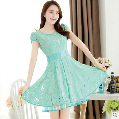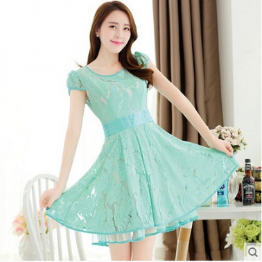• 商品名称:高端2015夏装新款修身淑坊女女装蕾丝短袖复古森女连衣裙装